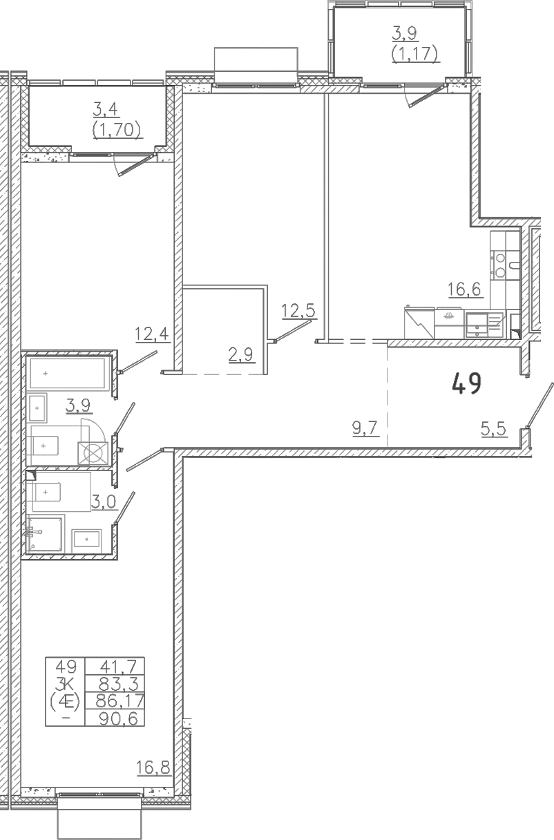 - Комнат: 4Е-к.кв