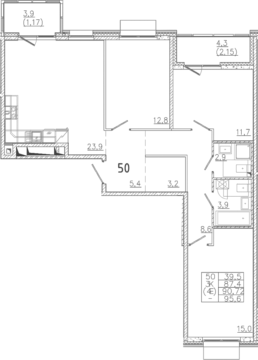 - Комнат: 4Е-к.кв