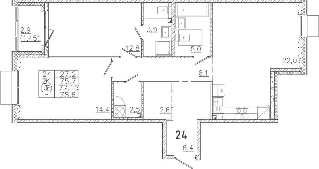 - S общая: 75.7 м2