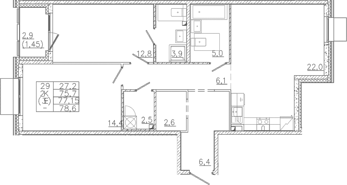 Цена за м2: 328 269₽- Отделка: Подчистовая
