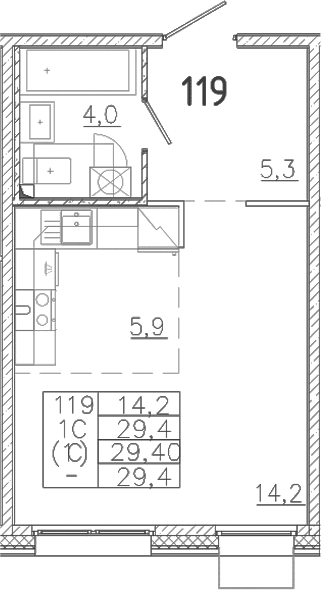- S общая: 29.4 м2