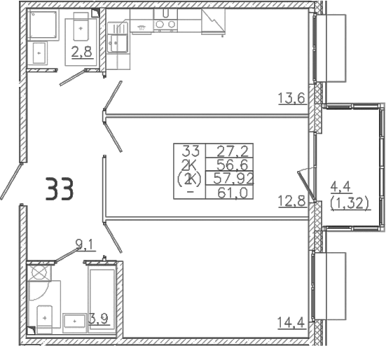 - Комнат: 2-к.кв