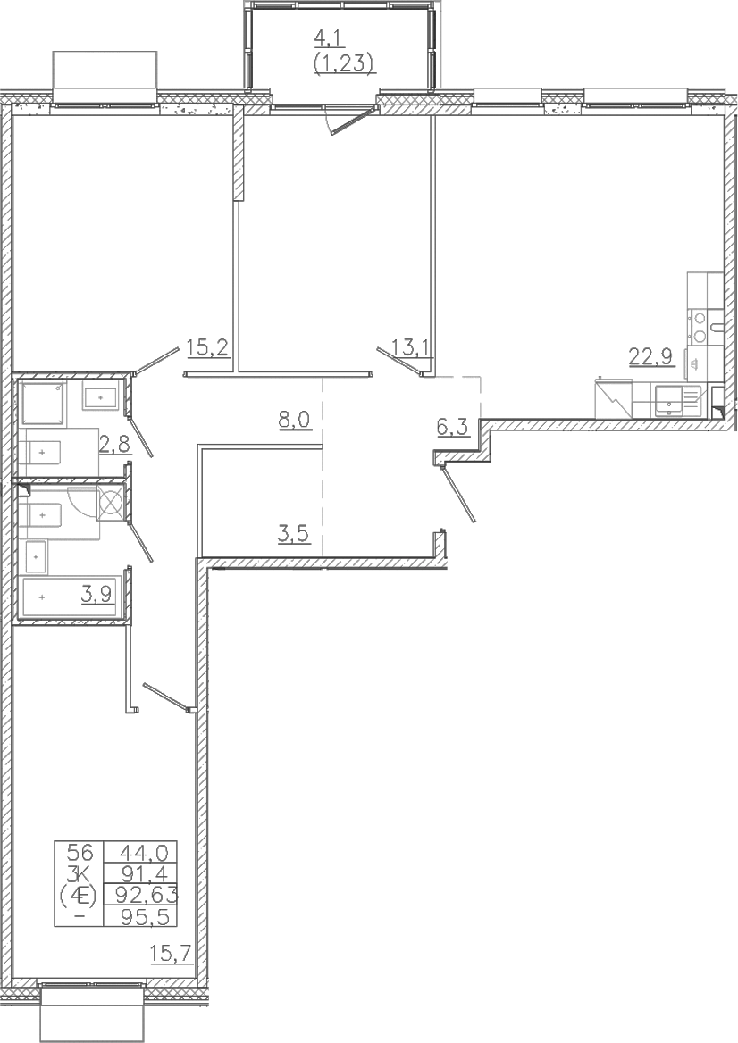 - Комнат: 4Е-к.кв