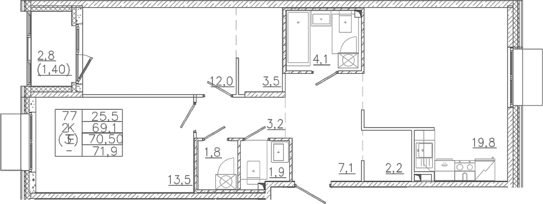 - S общая: 69.1 м2