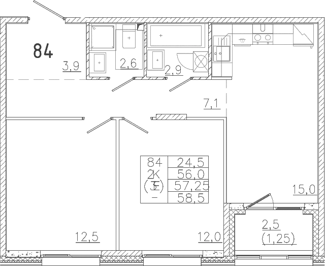 - Комнат: 3Е-к.кв