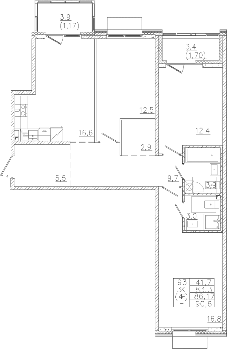 - S общая: 83.3 м2