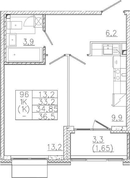 - Комнат: 1-к.кв