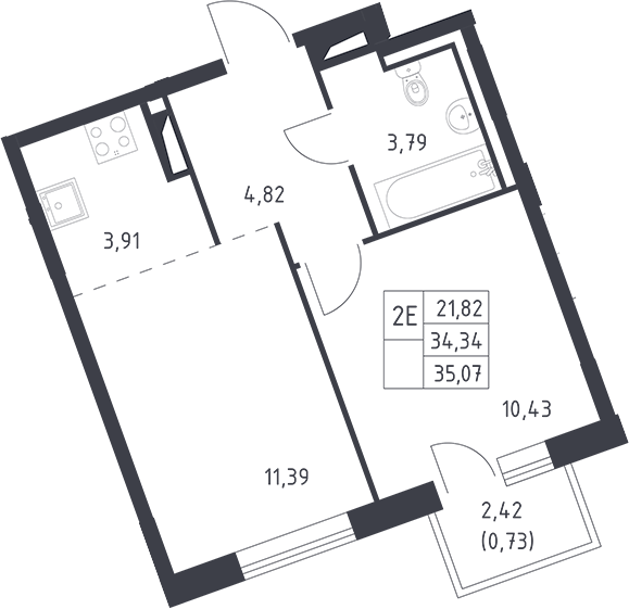 - S общая: 34.34 м2