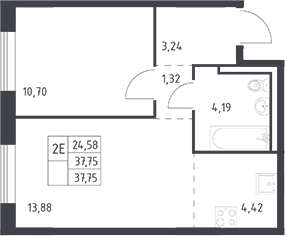 - S общая: 37.75 м2