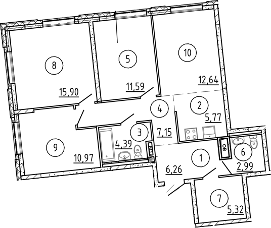 В проекте предложено множество планировочных решений: от студий до четырехкомнатных квартир евроформата с гостевыми спальнями. Окна увеличенного формата пропускают больше естественного света. Сдаются квартиры с чистовой отделкой и высотой потолков от 2,77 метров.