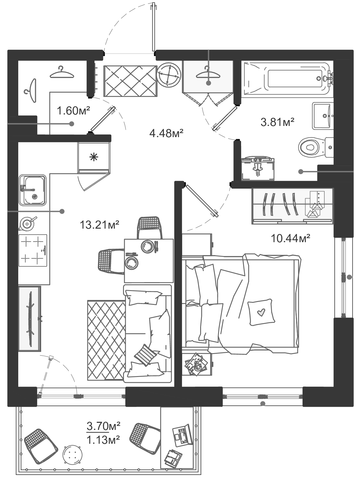 - Комнат: 1-к.кв
