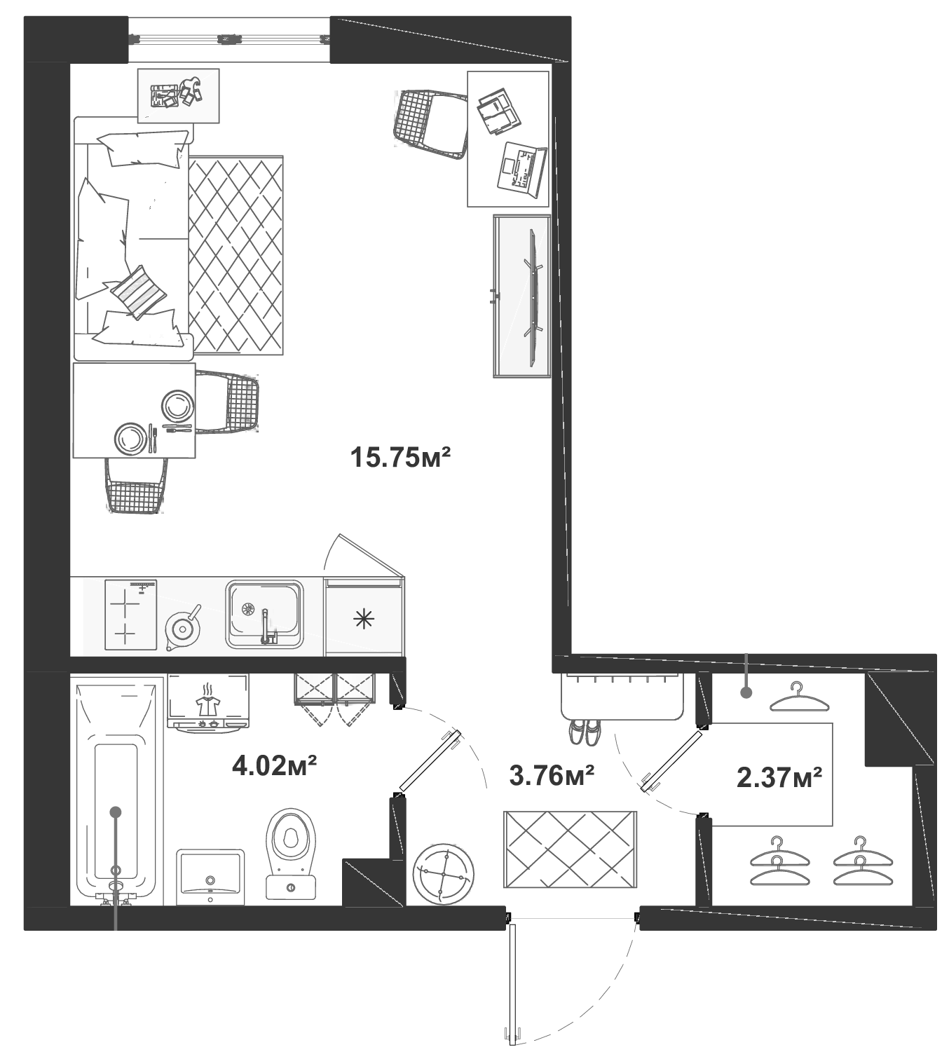- Комнат: Студия