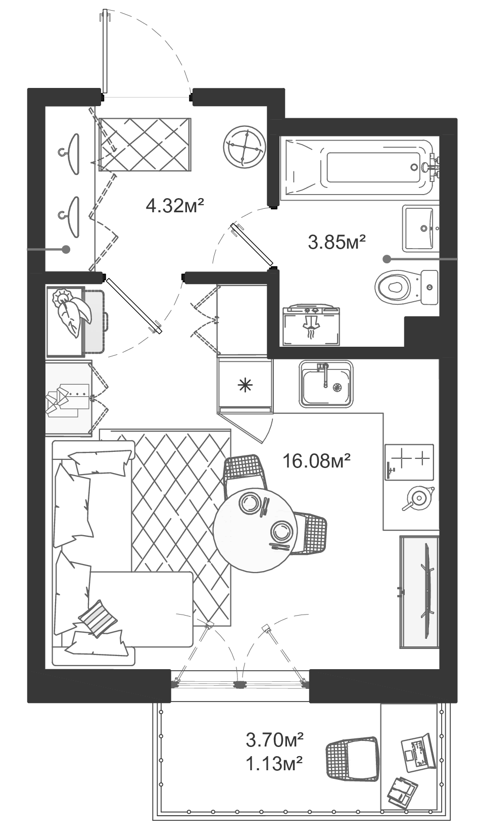 - Комнат: Студия