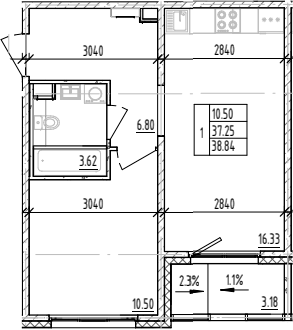 - Комнат: 1-к.кв