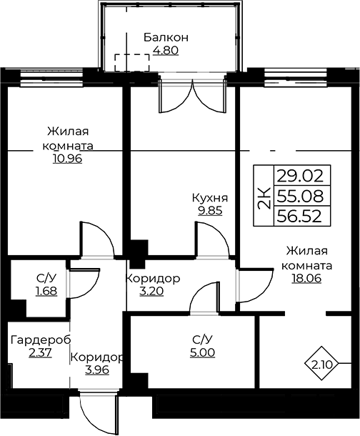 В проекте предложено множество планировочных решений: в наличии квартиры, как классического типа, так и европланировки. Сдаются они с чистовой отделкой в 2 цветовых решениях, высотой потолков от 2.67 до 4.27 метров и увеличенными окнами. Двухуровневые квартиры сдаются без отделки, с высотой потолков на 1 этаже — 2.97, 2 этаже — 3.1 метров. В ЖК имеются лоты с террасами и видом на лес.