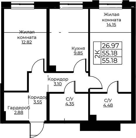 В проекте предложено множество планировочных решений: в наличии квартиры, как классического типа, так и европланировки. Сдаются они с чистовой отделкой в 2 цветовых решениях, высотой потолков от 2.67 до 4.27 метров и увеличенными окнами. Двухуровневые квартиры сдаются без отделки, с высотой потолков на 1 этаже — 2.97, 2 этаже — 3.1 метров. В ЖК имеются лоты с террасами и видом на лес.