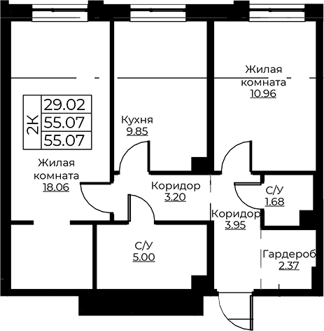 В проекте предложено множество планировочных решений: в наличии квартиры, как классического типа, так и европланировки. Сдаются они с чистовой отделкой в 2 цветовых решениях, высотой потолков от 2.67 до 4.27 метров и увеличенными окнами. Двухуровневые квартиры сдаются без отделки, с высотой потолков на 1 этаже — 2.97, 2 этаже — 3.1 метров. В ЖК имеются лоты с террасами и видом на лес.
