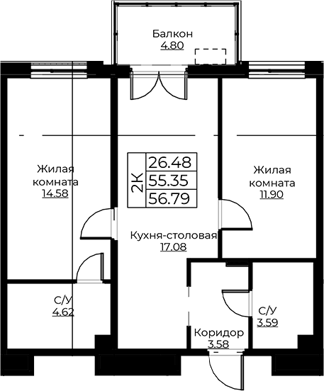 В проекте предложено множество планировочных решений: в наличии квартиры, как классического типа, так и европланировки. Сдаются они с чистовой отделкой в 2 цветовых решениях, высотой потолков от 2.67 до 4.27 метров и увеличенными окнами. Двухуровневые квартиры сдаются без отделки, с высотой потолков на 1 этаже — 2.97, 2 этаже — 3.1 метров. В ЖК имеются лоты с террасами и видом на лес.