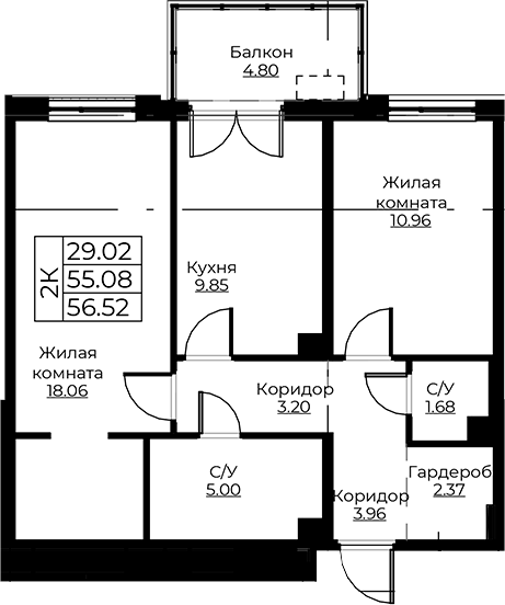 В проекте предложено множество планировочных решений: в наличии квартиры, как классического типа, так и европланировки. Сдаются они с чистовой отделкой в 2 цветовых решениях, высотой потолков от 2.67 до 4.27 метров и увеличенными окнами. Двухуровневые квартиры сдаются без отделки, с высотой потолков на 1 этаже — 2.97, 2 этаже — 3.1 метров. В ЖК имеются лоты с террасами и видом на лес.