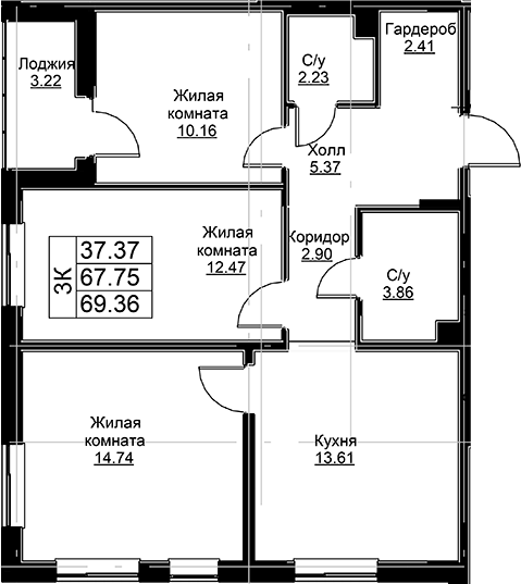 - S общая: 67.75 м2
