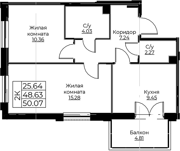 - S общая: 48.63 м2