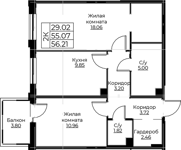 В проекте предложено множество планировочных решений: в наличии квартиры, как классического типа, так и европланировки. Сдаются они с чистовой отделкой в 2 цветовых решениях, высотой потолков от 2.67 до 4.27 метров и увеличенными окнами. Двухуровневые квартиры сдаются без отделки, с высотой потолков на 1 этаже — 2.97, 2 этаже — 3.1 метров. В ЖК имеются лоты с террасами и видом на лес.