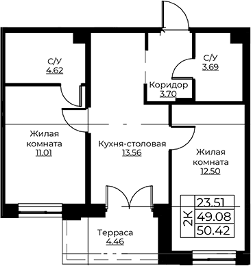 В проекте предложено множество планировочных решений: в наличии квартиры, как классического типа, так и европланировки. Сдаются они с чистовой отделкой в 2 цветовых решениях, высотой потолков от 2.67 до 4.27 метров и увеличенными окнами. Двухуровневые квартиры сдаются без отделки, с высотой потолков на 1 этаже — 2.97, 2 этаже — 3.1 метров. В ЖК имеются лоты с террасами и видом на лес.