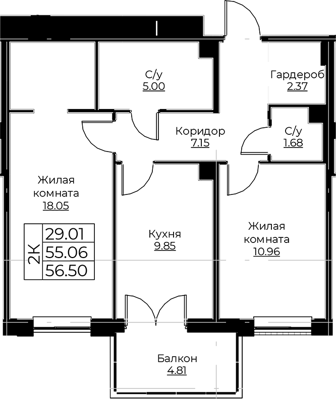 В проекте предложено множество планировочных решений: в наличии квартиры, как классического типа, так и европланировки. Сдаются они с чистовой отделкой в 2 цветовых решениях, высотой потолков от 2.67 до 4.27 метров и увеличенными окнами. Двухуровневые квартиры сдаются без отделки, с высотой потолков на 1 этаже — 2.97, 2 этаже — 3.1 метров. В ЖК имеются лоты с террасами и видом на лес.