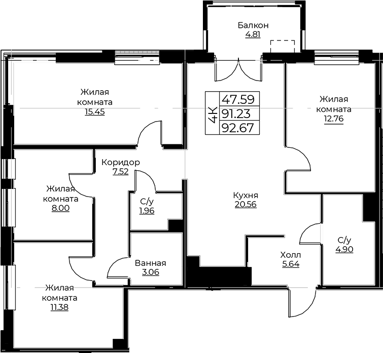 В проекте предложено множество планировочных решений: в наличии квартиры, как классического типа, так и европланировки. Сдаются они с чистовой отделкой в 2 цветовых решениях, высотой потолков от 2.67 до 4.27 метров и увеличенными окнами. Двухуровневые квартиры сдаются без отделки, с высотой потолков на 1 этаже — 2.97, 2 этаже — 3.1 метров. В ЖК имеются лоты с террасами и видом на лес.