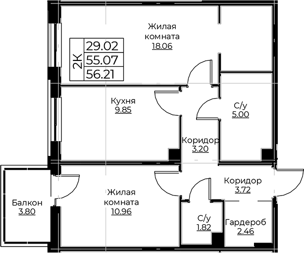 В проекте предложено множество планировочных решений: в наличии квартиры, как классического типа, так и европланировки. Сдаются они с чистовой отделкой в 2 цветовых решениях, высотой потолков от 2.67 до 4.27 метров и увеличенными окнами. Двухуровневые квартиры сдаются без отделки, с высотой потолков на 1 этаже — 2.97, 2 этаже — 3.1 метров. В ЖК имеются лоты с террасами и видом на лес.