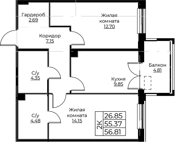 В проекте предложено множество планировочных решений: в наличии квартиры, как классического типа, так и европланировки. Сдаются они с чистовой отделкой в 2 цветовых решениях, высотой потолков от 2.67 до 4.27 метров и увеличенными окнами. Двухуровневые квартиры сдаются без отделки, с высотой потолков на 1 этаже — 2.97, 2 этаже — 3.1 метров. В ЖК имеются лоты с террасами и видом на лес.