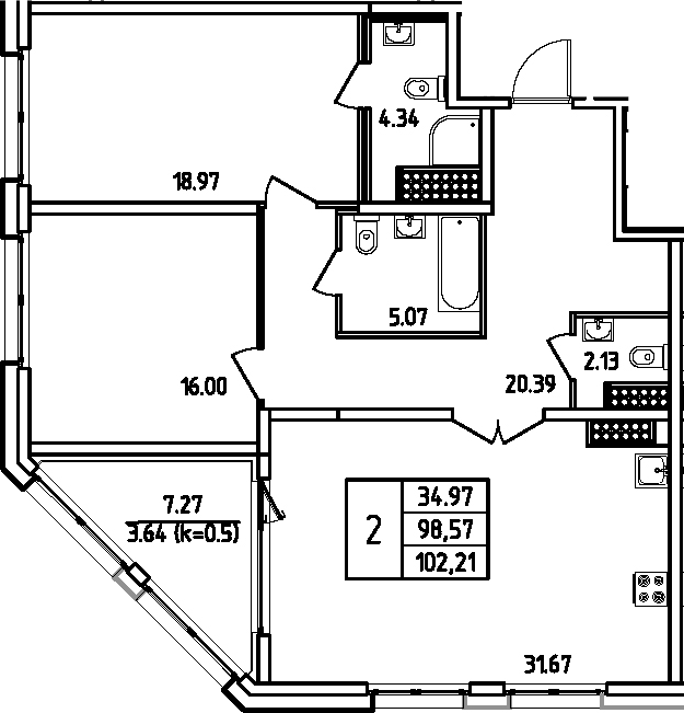 - S общая: 96.86 м2