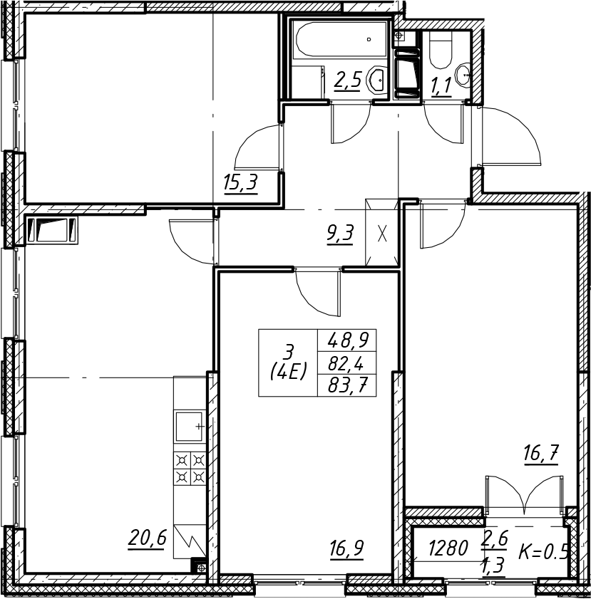 - Комнат: 4Е-к.кв