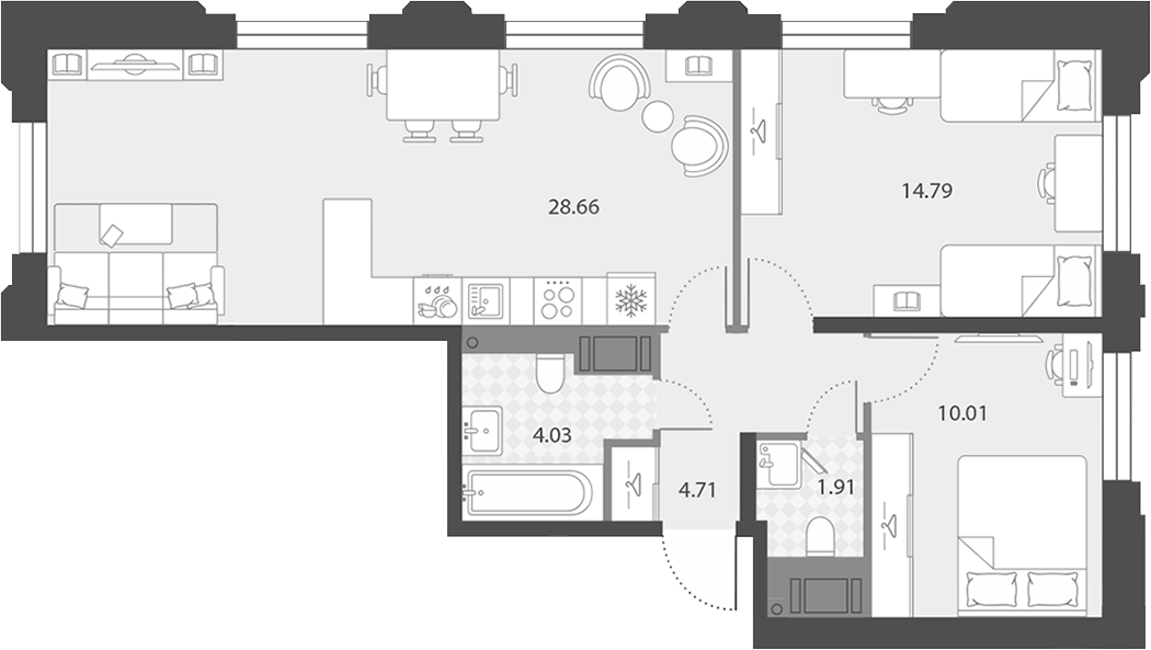 Цена за м2: 321 500₽- Отделка: Подчистовая