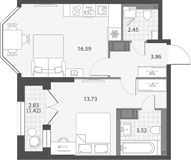 Цена за м2: 333 756₽- Отделка: Подчистовая