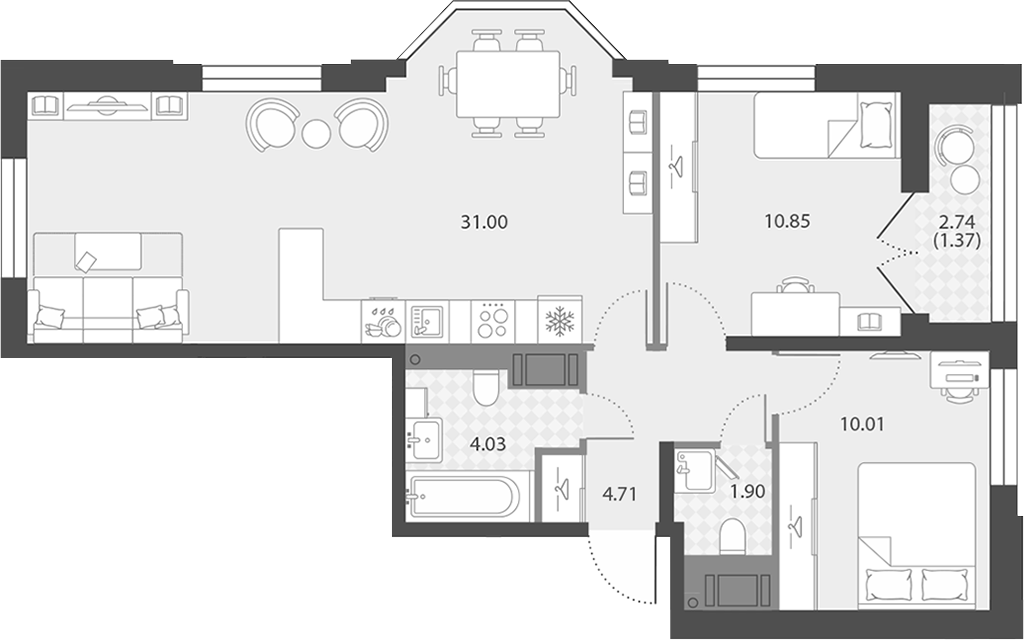 Цена за м2: 356 344₽- Отделка: Подчистовая