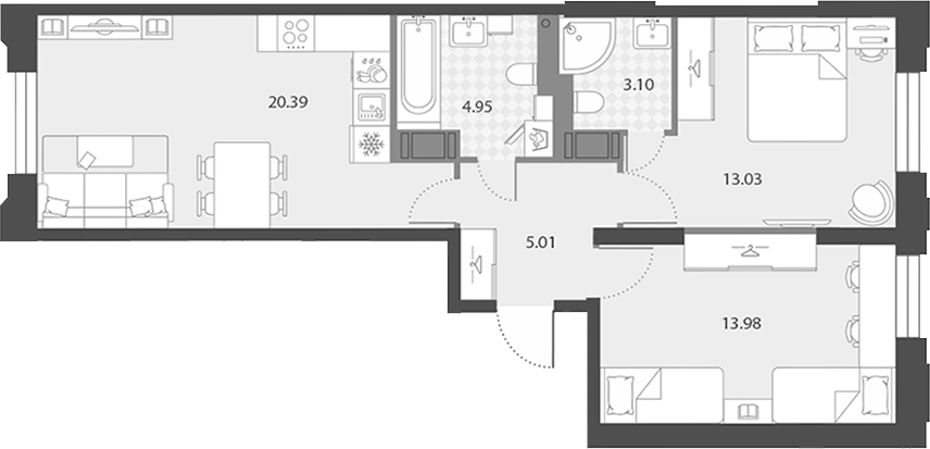 Цена за м2: 318 900₽- Отделка: Подчистовая