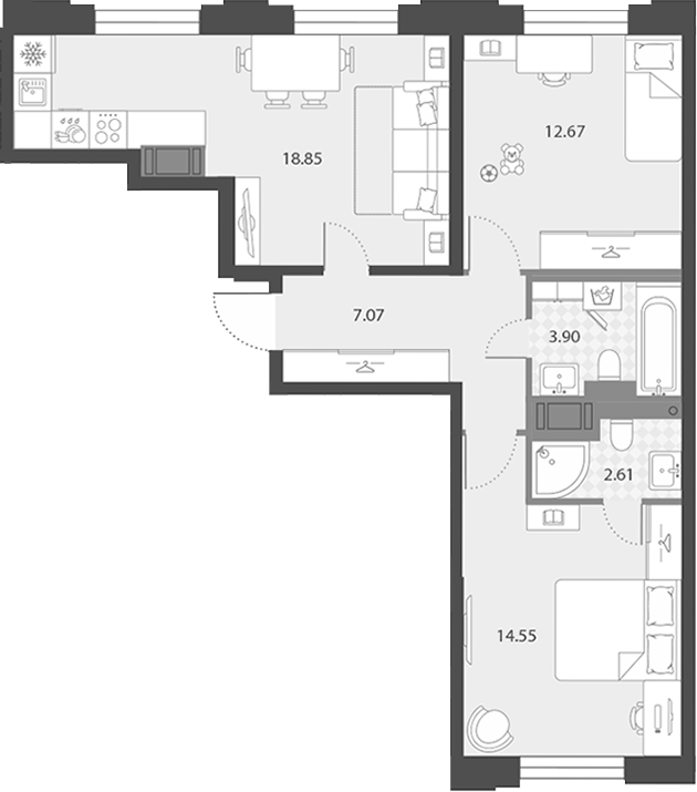 Цена за м2: 318 100₽- Отделка: Подчистовая