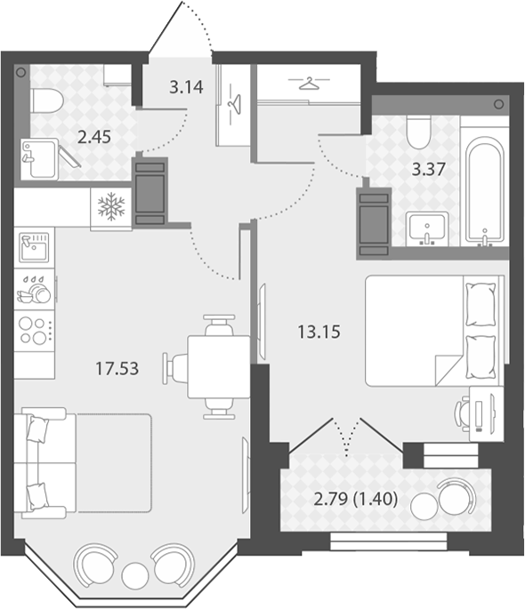 Цена за м2: 308 525₽- Отделка: Подчистовая