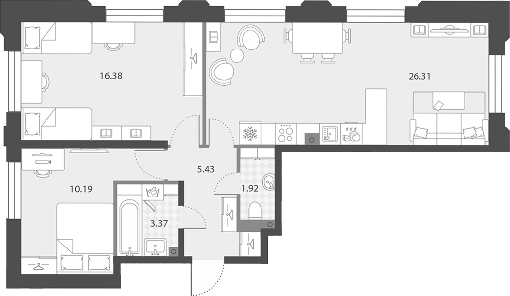 Цена за м2: 286 500₽- Отделка: Подчистовая