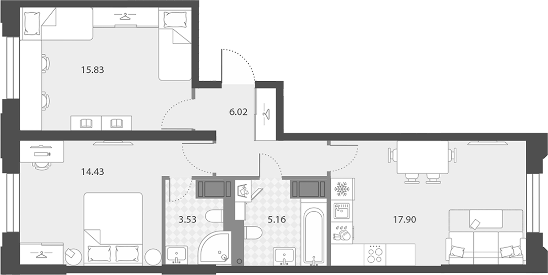 Цена за м2: 294 800₽- Отделка: Подчистовая