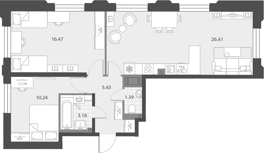 Цена за м2: 293 300₽- Отделка: Подчистовая