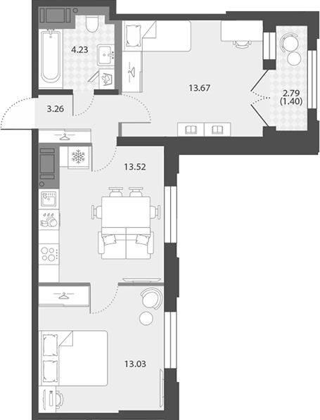 Цена за м2: 350 800₽- Отделка: Подчистовая