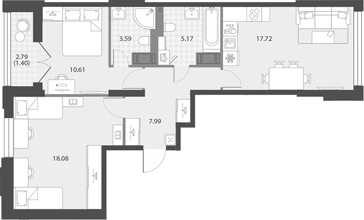Цена за м2: 333 328₽- Отделка: Подчистовая
