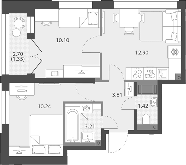 Цена за м2: 376 203₽- Отделка: Подчистовая