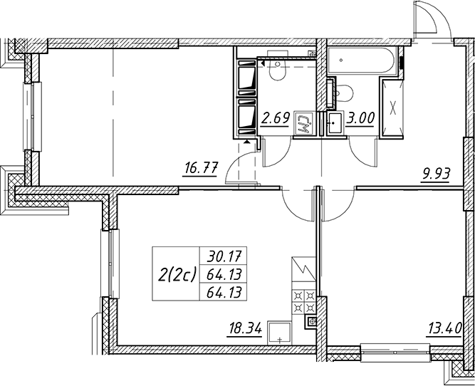 Цена за м2: 305 000₽- Отделка: Подчистовая