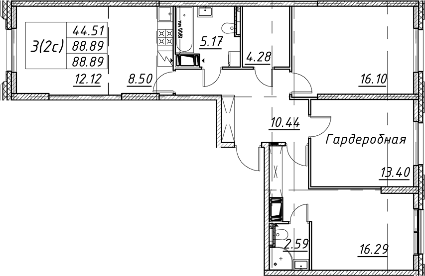Цена за м2: 312 300₽- Отделка: Подчистовая