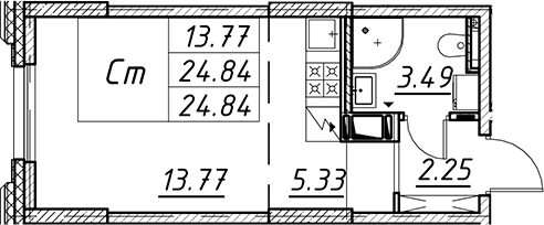 Цена за м2: 344 000₽- Отделка: Подчистовая
