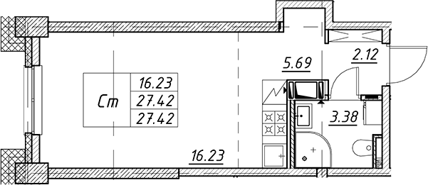 - S общая: 27.42 м2