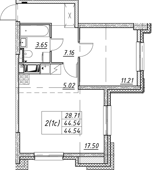 - S общая: 44.54 м2